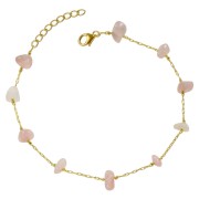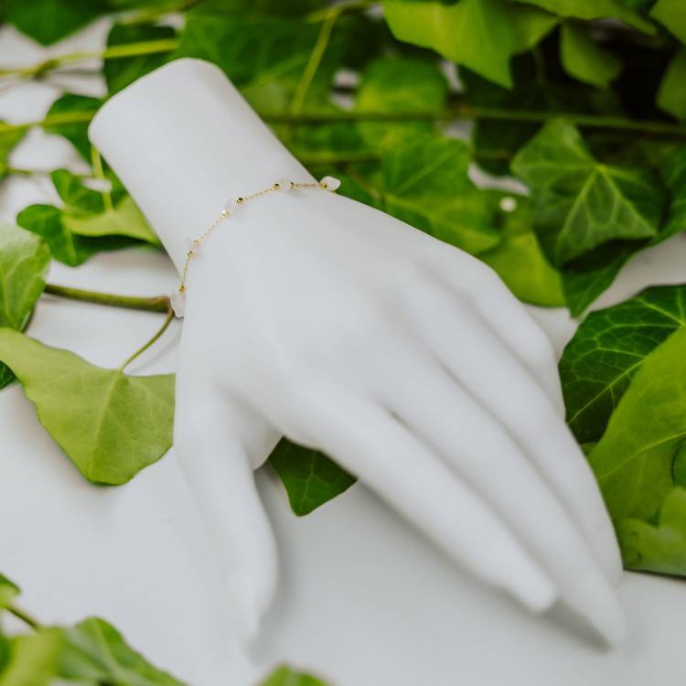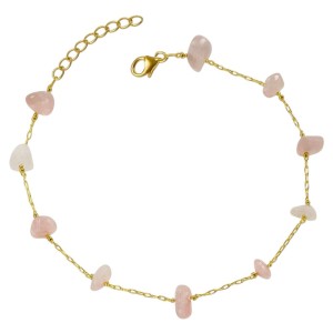 Lekka jak dotyk, pełna harmonii i kobiecości. Ta złota bransoletka zdobiona nieregularnymi kamieniami różowego kwarcu to połączenie natury i elegancji. Każdy kamień jest unikalny – jak Ty. Różowy kwarc symbolizuje miłość, spokój i równowagę, wnosząc do codzienności odrobinę ciepła i pozytywnej energii.