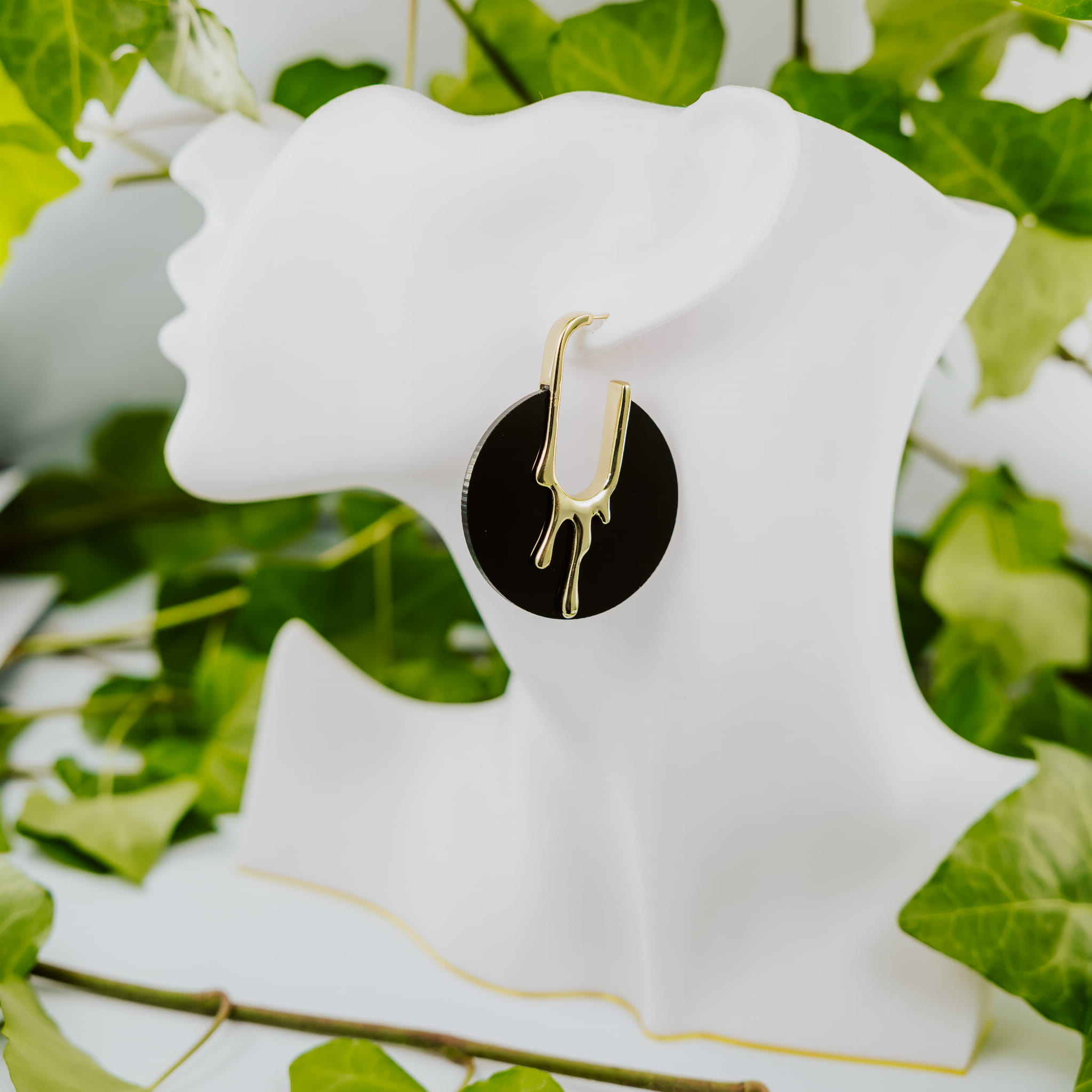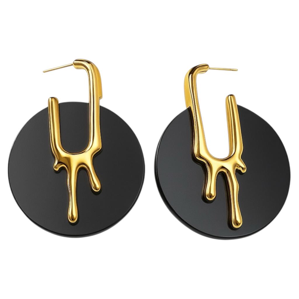 Zmysłowe i graficzne. Te kolczyki to połączenie intensywnej czerni i płynnego złota – jak stopiony metal spływający po nocnym niebie.