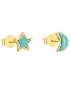 Kolczyki sztyfty turkusowymi gwiazdkami i księżycami - SREBRO 925
