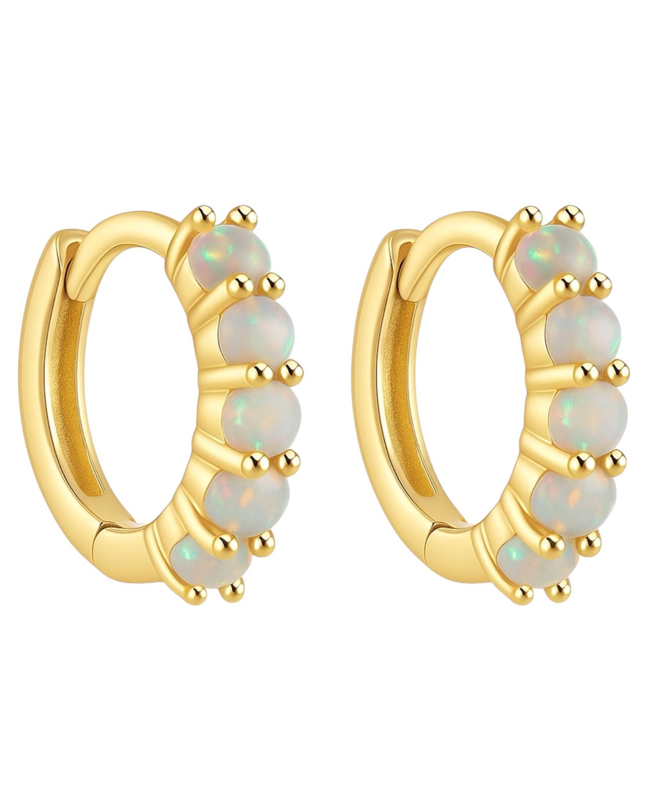 Zjawiskowe kolczyki huggie z opalem, które hipnotyzują iryzującym blaskiem. Połączenie klasycznego złota z eterycznym kamieniem tworzy biżuterię pełną ciepła, delikatności i kobiecej siły. Idealne na co dzień i wyjątkowe okazje.