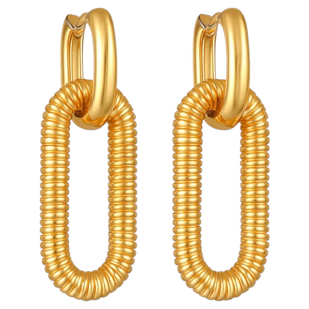 Nowoczesna forma z nutą industrialnej elegancji. Te kolczyki przyciągają wzrok geometrycznym kształtem i wyrazistą, sprężynową strukturą. Idealne dla kobiet, które cenią odważne dodatki – z pazurem, ale wciąż z klasą.