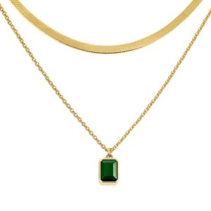 Naszyjnik podwójny z zieloną cyrkonią