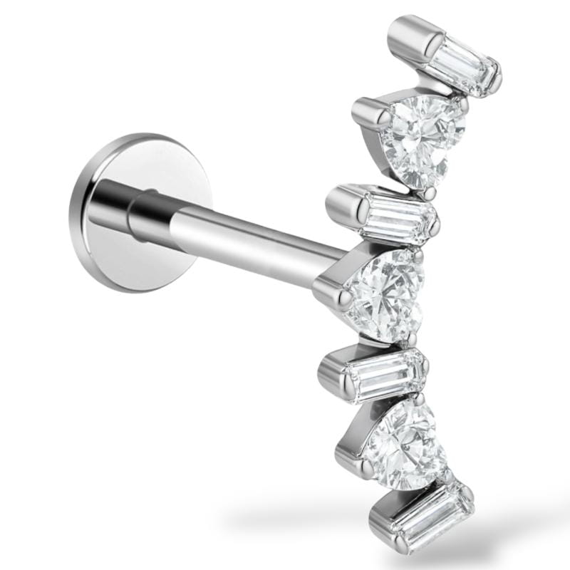 Tytanowy kolczyk z serduszkami i podłużnymi cyrkoniami