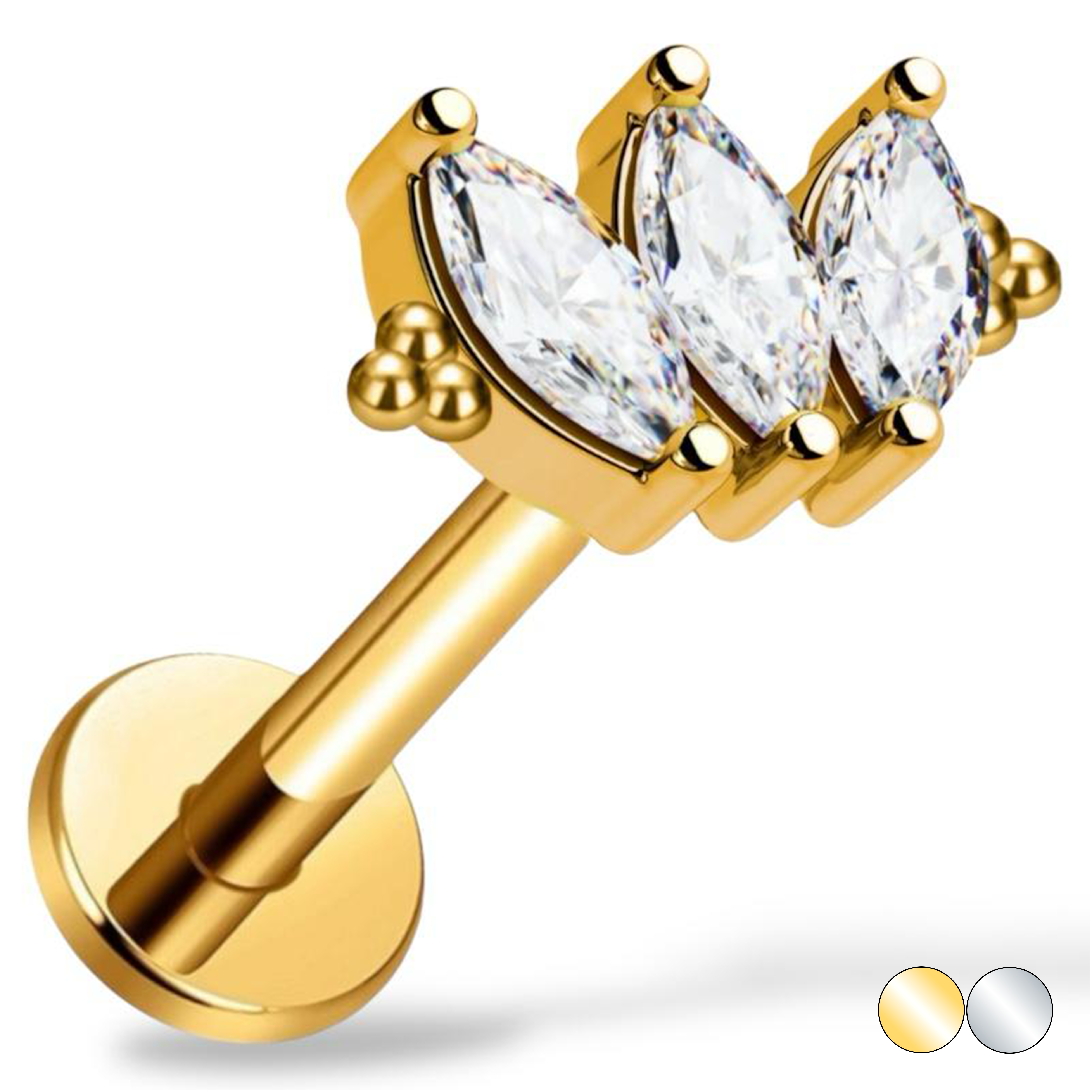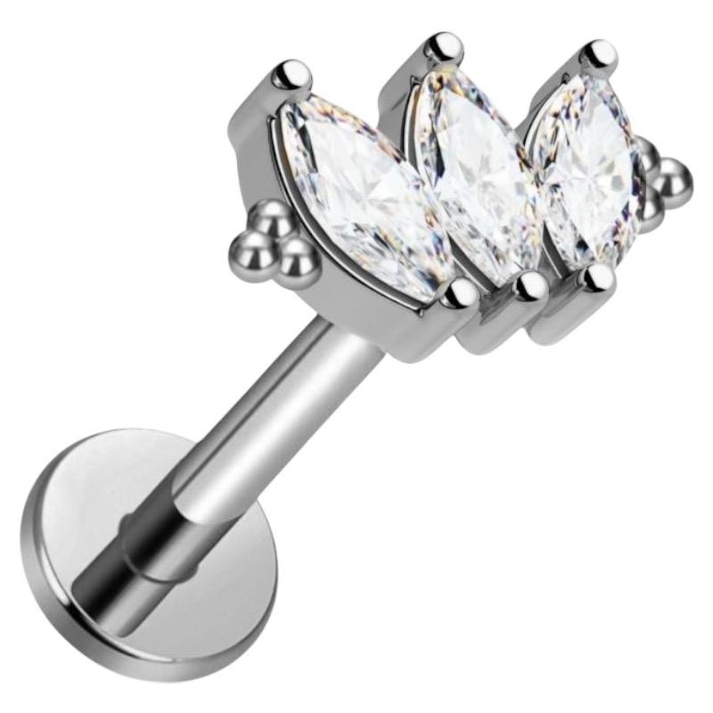 Tytanowy labret cyrkonie markizy i kuleczki ozdobne