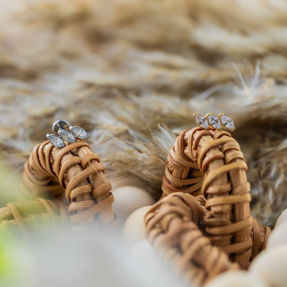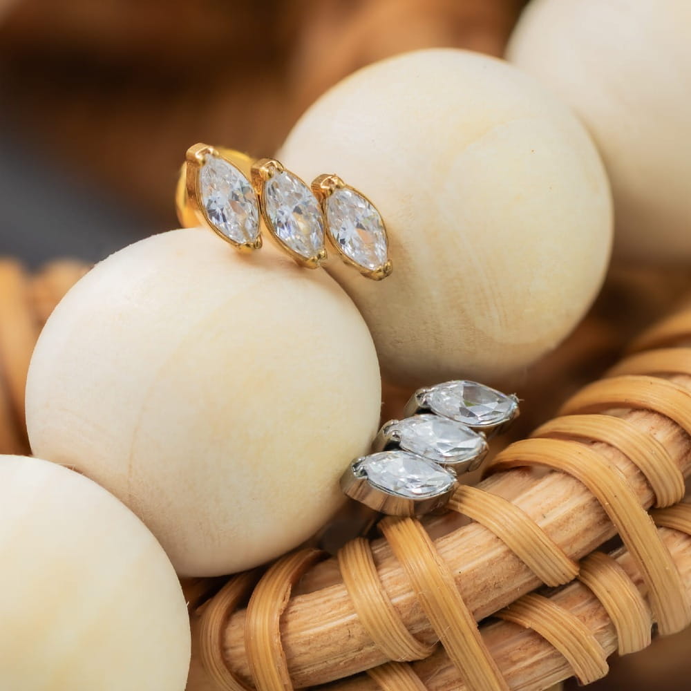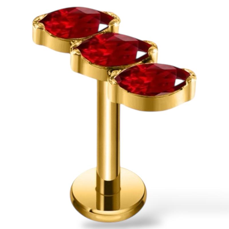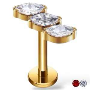 Tytanowy złoty Labret z trzema cyrkoniami w kształcie łezki