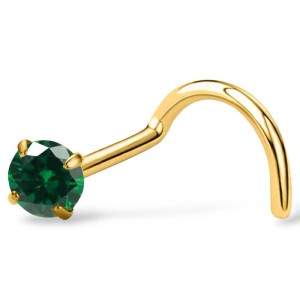 Tytanowy złoty kolczyk do nosa Pigmej z zieloną cyrkonią