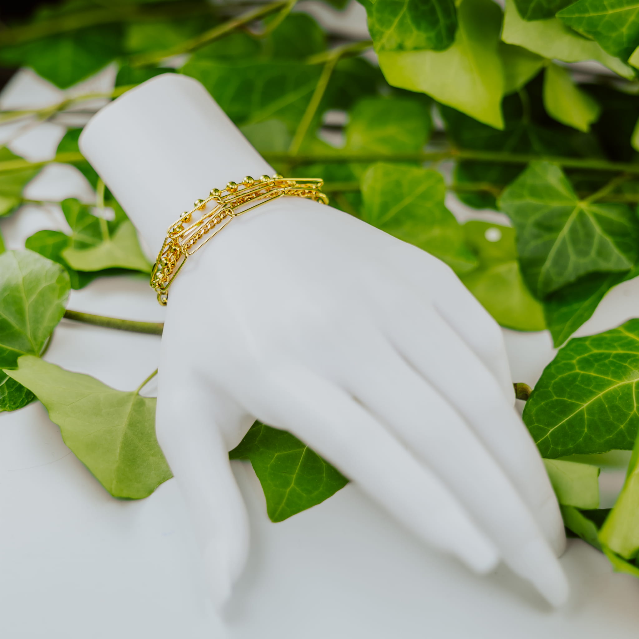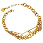 Bransoletka została wykonana ze stali szlachetnej o złotym wykończeniu, dzięki czemu zachwyca trwałością i blaskiem przez długi czas. Doskonała dla kobiet, które lubią biżuterię z osobowością — subtelną, ale przyciągającą uwagę.